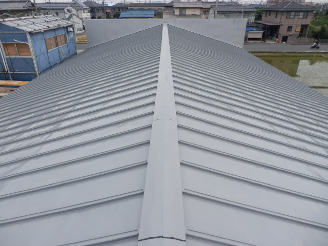 【鉄板屋根の塗装後】 入念なケレンとサビ止めの下処理で長期的に安心できる仕上げを施しました。
