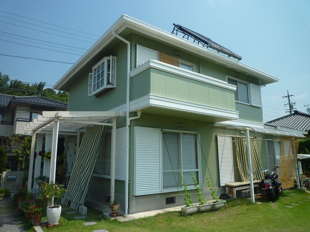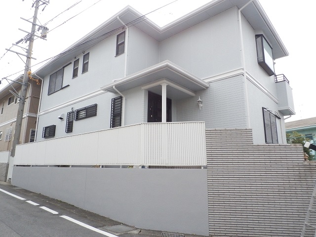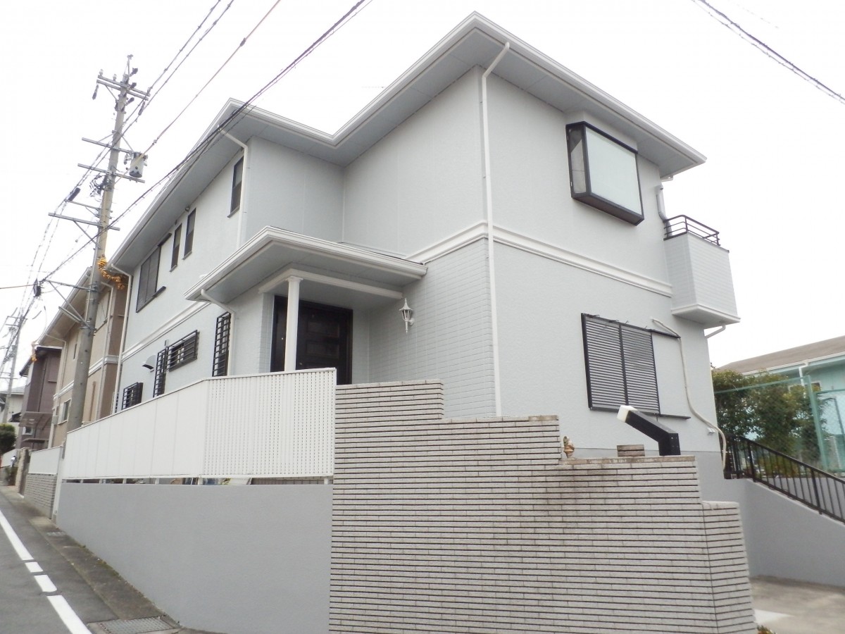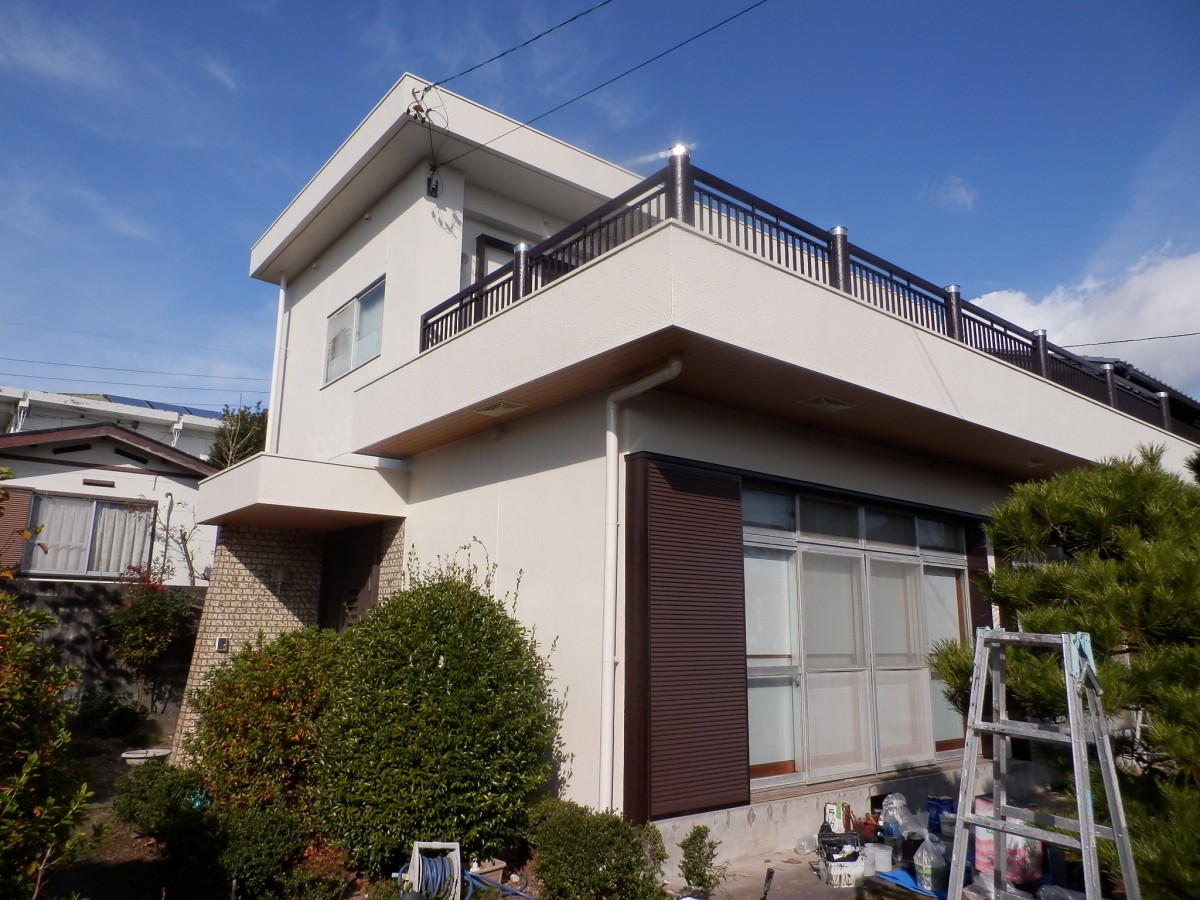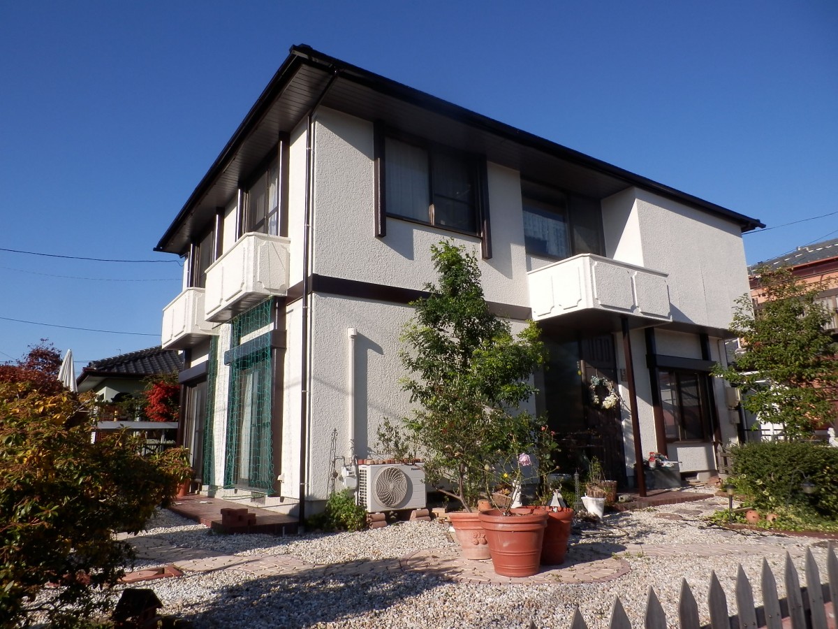 弊社施工のお客様からのご紹介でお問い合わせ頂き、施工させて頂きました。お客様のご要望で2トーンカラーで塗装しました、色決めも入念に行い、材料もこだわりのフッ素塗料で美観も耐久性も申し分ない仕上がりで大変喜んでいただけました。木部塗装や漆喰工事、樋やトタンの交換など、リフォーム工事も施工させて致しました。ありがとうございました。