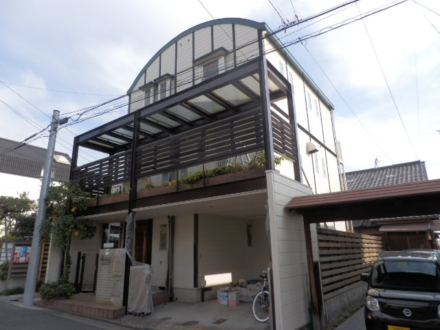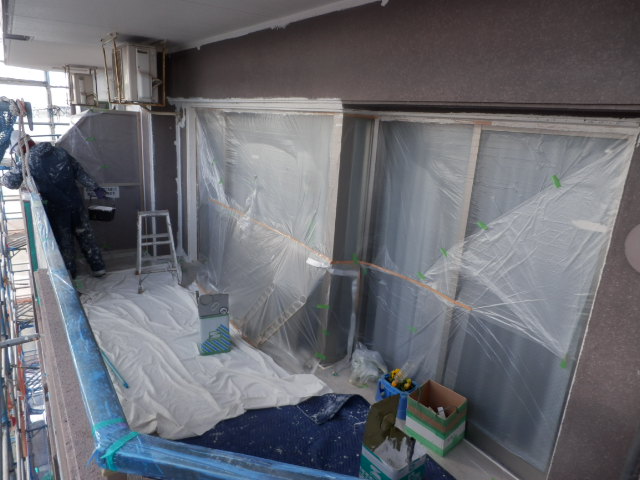 7年前当社で外壁の塗装工事をしていただいたお客様です、今回は防水が心配だということで、前回の防水から15年経過していることから、屋上・3階・2階の防水を全て行いました。