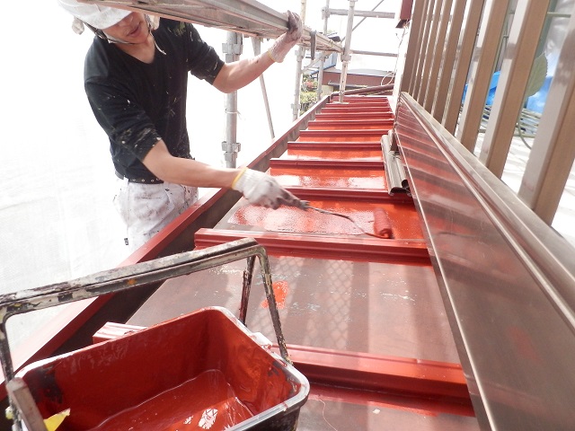 サビ止め塗装の施工、見えない部分ですがしっかり厚く塗り仕上げます。